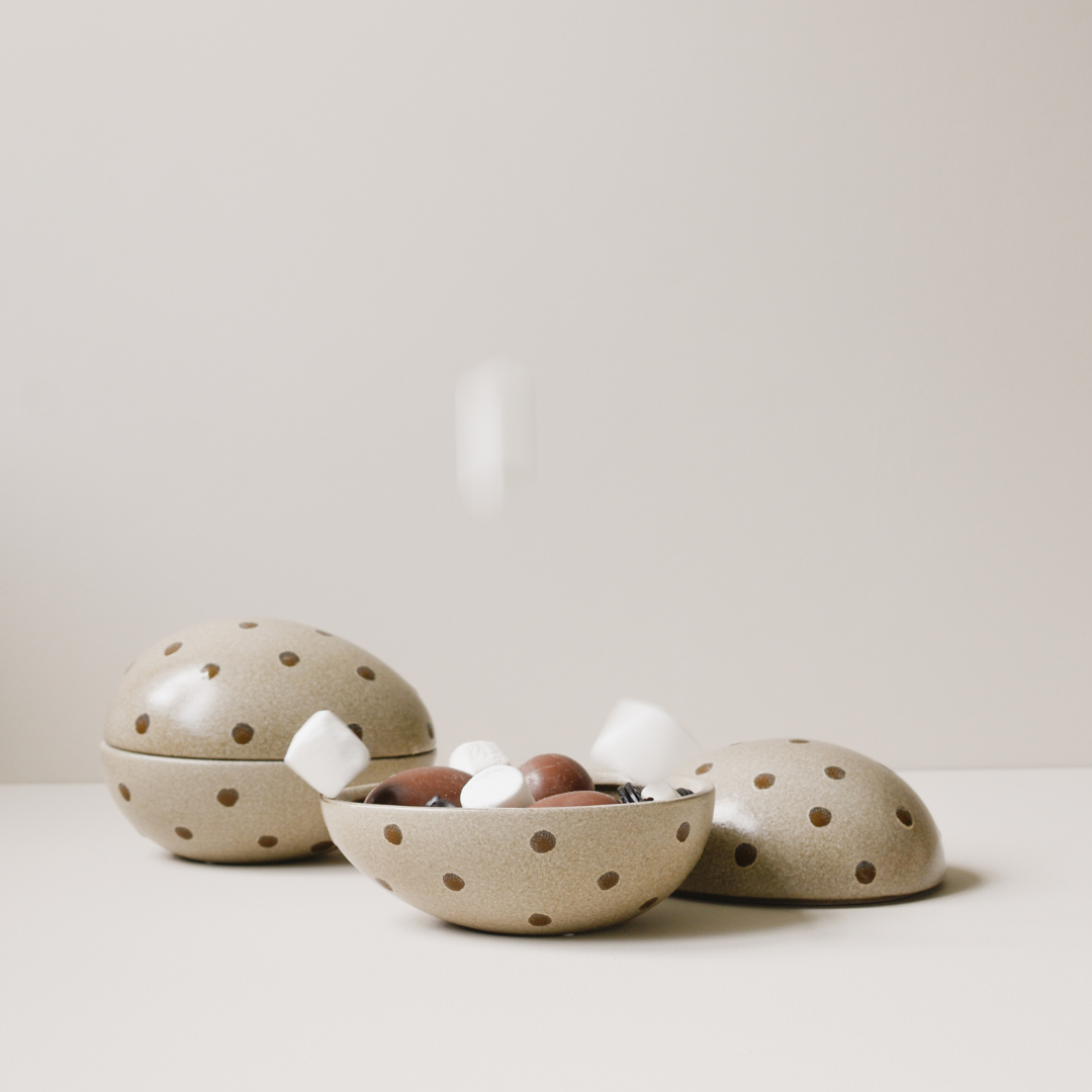 Ovo em cerâmica e com design simples e elegante, pode ser usado como pote de armazenamento, malga de servir ou elemento decorativo.